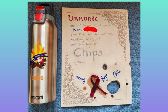 Pfaditaufurkunde und meine Thermosflasche mit Pfadinamen seit 17.01.2026! (27.01.26)